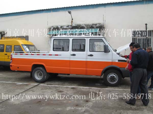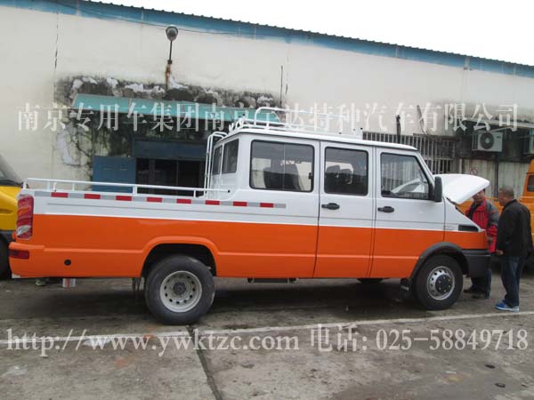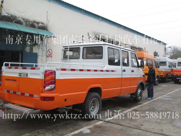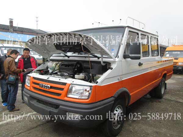 1、技术领先。2、系列完善。3、动力强劲。4、安全舒适。5、经济性好。6、通过性好。7、爬坡度大。8、空间合理。9、维护保障有力。10、高性能选装件;本车型主要采用依维柯系列底盘改装。底盘前后均匀非独立悬挂,非断开式转向式前桥,锻制整体工艺梁,使转向更加灵活、平稳。非断开式驱动后桥,整体冲压焊接桥壳、全浮式半轴使稳定性、平稳性大大提高。真空助力双回路液压制动、冷暖空调使驾驶更安全、舒适。整车配备有车顶行李架等设备。此车广泛用于油田、电力、电信、市政、公路抢险、供水、有线电视等部门,是工程安装及有关设施抢险维护保养的理想用车。功能特点:选用了依维柯底盘,其结构合理,与整车匹配性强,具有良好的动力性,可靠性;全冲压件结构,阴极电泳,防锈能力强。前部全景夹层玻璃,为驾驶员提供了良好的视野;全车米色系的内饰,符合人体工程学的座位设计,人性化设计的仪表台,各类警示灯及控制开关均易触及,使您的驾乘更惬意,更舒适。