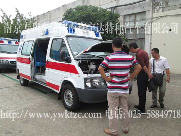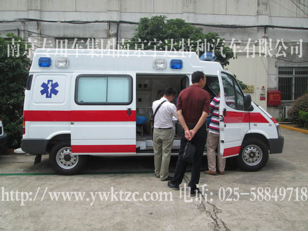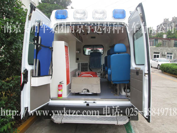 国际流行救护车方顶及外型、玻璃钢一体式模具内饰、长条警灯、爆闪灯、照明、灯密封中隔断、医生座椅、家属