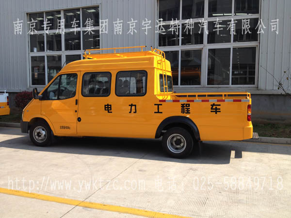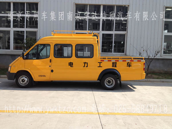 该车外观为全黄,流线型的轮廓使得整个车身更优美,使用燃油为柴油,使得工作起来车的动力更强劲,耗油更低,内饰合理的布局,使得工作人员坐在车内,更舒适。全顺电力工程车你值得拥有。全顺工程车,江铃全顺工程车,电力工程车,9座工程车,三排工程车,福特工程车,全顺电力工程车。