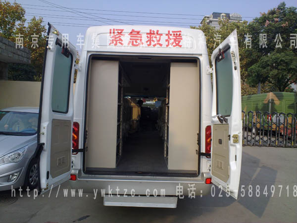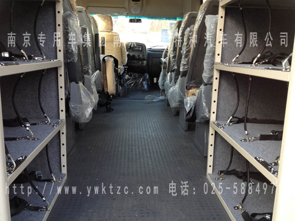 5、在车内后部左侧放呼吸机柜1只,柜内有仪器固定扎带及挡带,柜内为软毯边面;