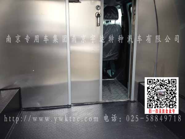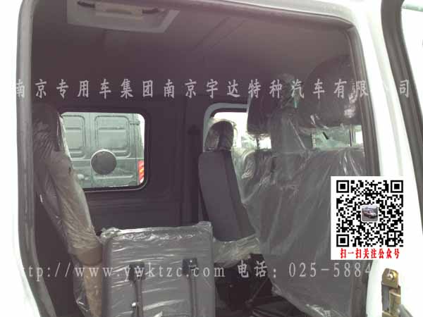 该车选用江铃经典全顺短轴中顶这款车进行改装,整车整体为白,下保险杠为深蓝颜色,喷押运警示标识,原车的空调系统、多媒体播放系统,原中侧拉门改为中推拉门并配备中控门锁,2+1三人押运员座椅,第三座椅可翻折,两点式安全带,驾驶舱电动升降射击口兼票据传递口,押运舱暗藏式射击口,手动通风逃生天窗,中隔断带滑动式隔离门,无锌花镀锌板钞箱内板,两侧内板瓦楞状,花纹钢板轮罩,运钞舱花纹钢板地板,双层双开钞箱后门使得整个过程中更安全,钞箱后门多项锁,车尾后踏板,可切换双镜头彩色监控系统(倒车以及运钞舱监控图像)半球监控摄像头,前防护保险杠,警报器,整车押运车及驾驶舱全为防弹,达到国家防弹A级标准。整车外观漂亮,实用,性价比高,经济省油!
