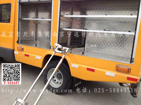 该车改装配置:前排双排座椅3+3,4+3都可以,后面整一个后箱体,骨架焊接,地面侧面花纹铝板,加装地环及扎带固定,前车顶 全黄长条LED警灯,四周LED爆闪灯,车顶行李架及后爬梯,车顶旋转照明灯,,车内12V的圆形LED照明灯,新颖的推拉式氧气瓶固定支架,使用起来方便,更省力,不用在费力的从车上搬下来了,高工作效率,乙炔和氧气分开存放,乙炔固定采用了支架卡箍固定,发电机采用了卡扣、扎带、地环等方式固定,方便拆卸移动使用,另该车可根据客户自定义的改装,满足你使用过程中一切需求,南京依维柯改装厂,南京抢险车,抢险车,依维柯抢险车,燃气抢险车,供水抢修车。