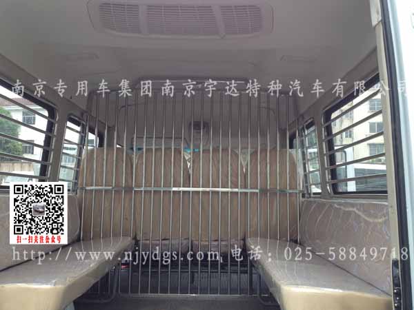 ①车厢内配备有囚笼、地环、座椅等装置,可进行押运囚犯等功能。②车身可喷涂粘贴04款警用标识。③选装车顶前
