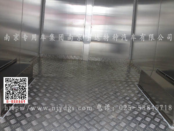 保温厢体为全密封长方型车厢,既具有良好的隔热、保温性能,满足物品,低温运输的保温要求。保温厢板结构形式为“三明治”大板粘接,采用的是国际通主流工艺,即采用聚氨脂硬质泡沫材料和内外蒙皮粘接而成,经过加温加压成型。厢体内外表面平整度高,采用圆弧型外包铝合金型材,牢固美观。冷藏车车厢底板为铝合金花纹板。后门采用多层迷宫式胶条密封,