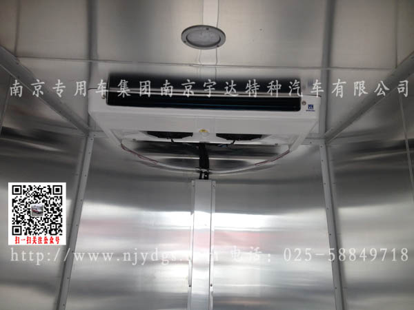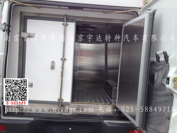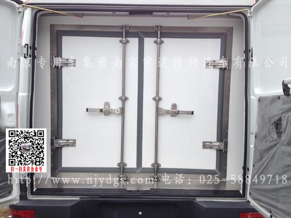 具有良好的密封性能,并设有车门固定锁钩。门框采用不锈钢材料,厢体后部装有橡胶防撞块。厢体综合性能指标达到QC/T450-2000标准的A级要求。车厢后部设有保险杠,具有整体强度好,安全美观。冷藏机组为国产机组劲达。