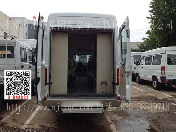 车身可喷涂粘贴彩条和救护行业相关标识。在整车的基础上装备救护灯、医疗隔断、输氧装置、输液装置、乘员座椅、救护外观标识等而成.随底盘选装电动门、选装整体式侧窗。选装多片簧时整车高度为2930mm。选装ABS,BOSCH ABS8,博世汽车部件(苏州)有限公司。选装后上车踏板时整车长度7193mm,选装后门加宽上车踏板长为7253。选装长条标志灯、换气扇高3125,多片簧时高为3180mm。选装盲窗,选装标志灯凸台,选装周边爆闪灯。扩展一种前围及部分灯具。