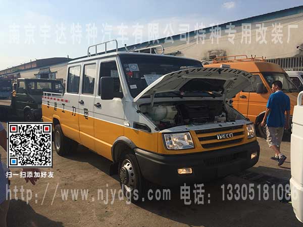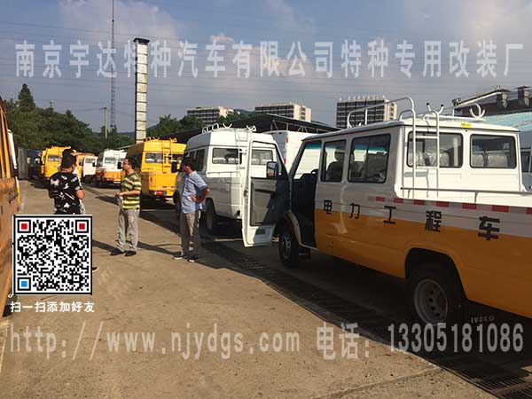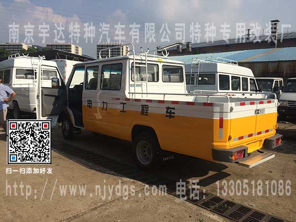 唐山电力公司在我司订购的俩台依维柯国五NJ5048XGC65BS/ NJ5048XGC65B/NJ5058XGC75B/NJ5048XGC675B/NJ5048XGC65AS/NJ5048XGC65A/NJ5058XGC75A/NJ5048XGC675A电力工程车,15座工程车和9座工程车已顺利交付。该车配备中央空调,车顶行李架,外观上白下黄。