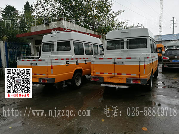 该俩台车上白下黄外观,字帖电力工程车字样,车顶配备车顶行李架,后爬梯,中央8000大卡空调,四轮碟刹,共轨电喷,带有涡轮增压中冷器,ABS防抱死系统,大大的提高了该车的动力以及车辆的安全性以及实用性。