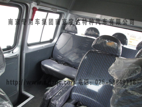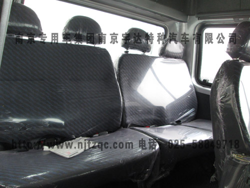 四排座、高顶、独立空调系统、饮水机(选装)、乘员座椅、附加单人座椅、附加双人座