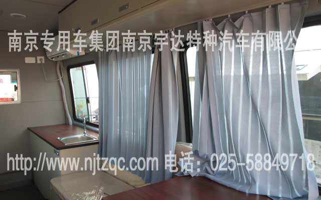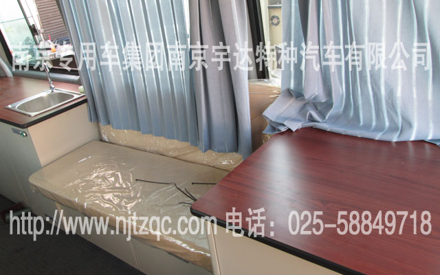 副驾驶加装双人座椅,中隔断把整个车体分为驾驶室和工作舱,加装两扇上掀门(工作窗
