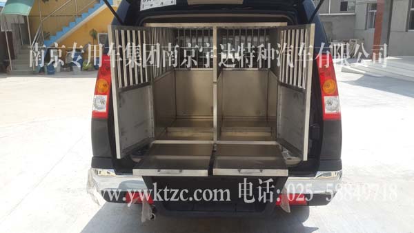 警犬车分为乘警舱和警犬舱,全顺犬车有4个犬笼,有可抽拉的食盘,更在犬笼下方安装