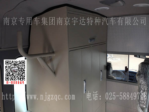 备机柜等专用装置时整备质量3500kg。选装:粘接玻璃窗,选装LED屏,高顶高度2790mm。选装雷达天线,选装雷达天线时整车高度3300mm。