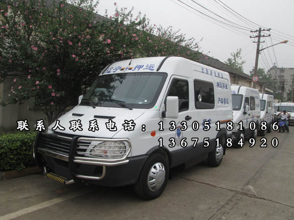 南京依维柯防弹车 押运车防弹运钞车车内设置一个带开门隔断,将整个车体分为驾驶、押运舱和运钞