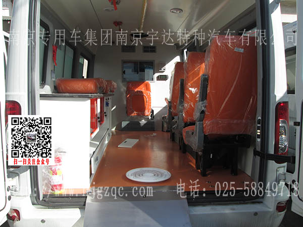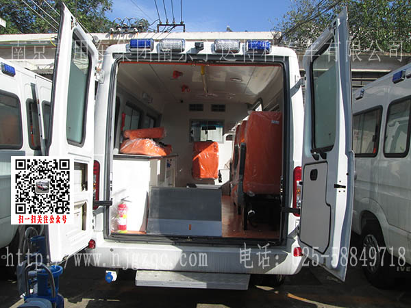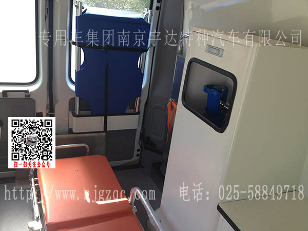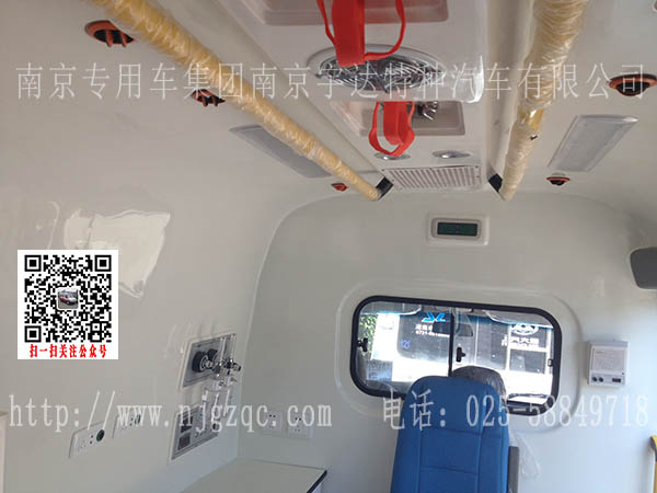 车辆装载有标志灯,救护标识,输液挂钩等装置。
