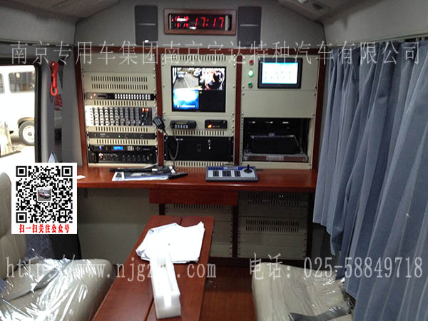 升降照明灯,探照灯,车顶工作平台及围栏,照明设备,云台摄像机,喇叭,换气扇,LED屏,后门爬梯,卫星天线。