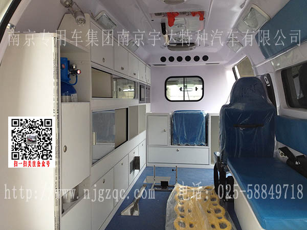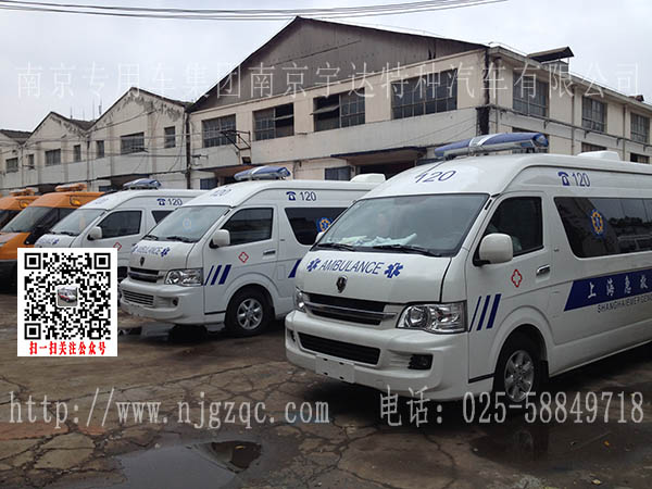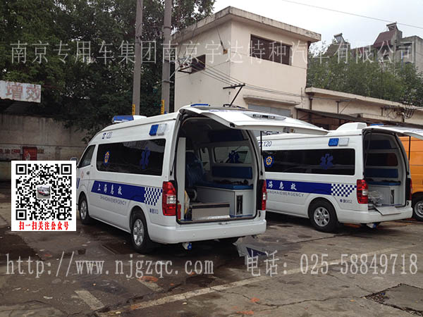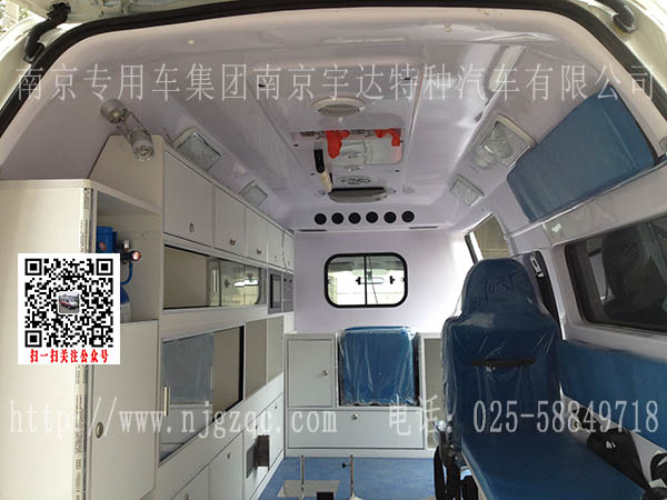 在整车的基础上装备救护警灯,救护标识,救护隔断,座椅等。