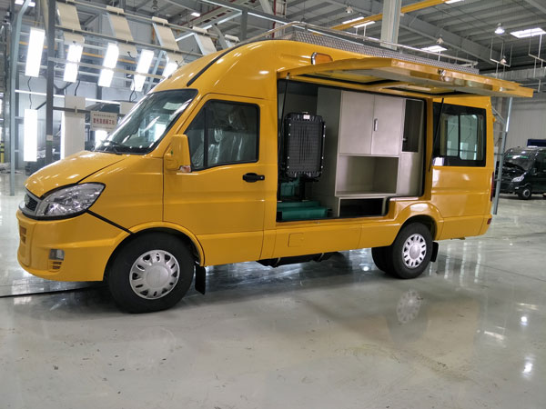 作台,工具箱等工程车专用设备,可按用户需求配备流动服务专用设备。车辆外观标识可按行业或用户要