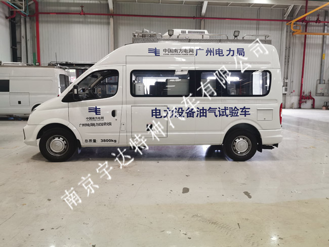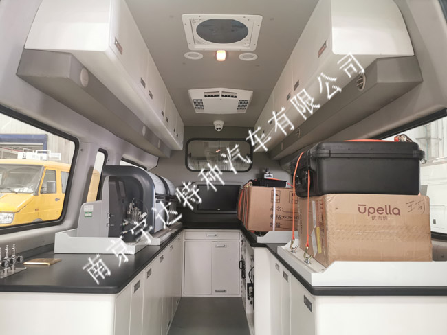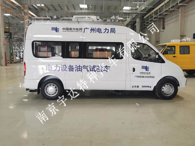 车内设置检测工作台,检测仪器设备柜,配置检测工具等专用设备及供电系统,主要用于现场检测检验服务等。车顶选装工作平台,防护围栏及场地照明灯,选装顶置空调,升降照明设备,LED屏,摄像云台,喇叭。选装两侧车窗部分或全部盲窗,选装上掀窗,选装小发电机舱门或工具舱门。选装后部爬梯。随原整车选装一体式后踏步,外摆门,高顶,推拉侧车窗,侧踏步,牌照装饰板,前格栅,尾标,轮圈,轮饰盖,不装外摄像头,不装侧移门。ABS型号:ABS 9,ESP9;ABS生产企业:博世汽车部件(苏州)有限公司,博世汽车部件(苏州)有限公司。该车发动机最大净功率100.5kW。