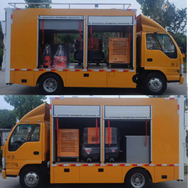 1、发动机净功率为87kW;2、随底盘选装制动系统:装液压制动系统时,ABS及其控制器型号/生产企业对应关系为:APG3550500A/浙江亚太机电股份有限公司,CM4YL/广州瑞立科密汽车电子股份有限公司;装气压制动系统时,ABS及其控制器型号/生产企业对应关系为:CM4XL-4S/4M/广州瑞立科密汽车电子股份有限公司;3、随底盘选装一种仅变化前面板、前格栅、前组合灯具的驾驶室;随底盘选装前部标牌“4K ENGING/NJR/NHR/NKR/100P”;4、车内设置工具柜、发电机组及电源控制系统,主要用于工程抢险救灾等使用。选装车顶防护围栏,场地照明灯,升降照明设备,长条警灯等;选装车身两侧及后部卷帘门。可选装后尾板,尾板收起状态水平长度125mm,尾板质量为350Kg,尾板额定载荷1000Kg;选装ETC车载装置。5、左、右侧防护装置为裙边式结构,材料:Q235,离地高300mm;后防护材料:Q235,连接方式:螺栓,断面尺寸:139mm×52mm,离地高度355mm。