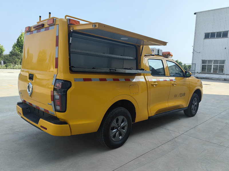 1.ABS型号及生产企业:ESP9/博世汽车部件(苏州)有限公司.发动机净功率值为140kW;2.专用装置及功能描述:配置救险用标志灯具、设备柜、电源控制系统,主要用于工程抢险救灾等使用;3.选装升降照明设备,车顶行李架,发电机,车厢顶部封闭且不可开启;选装车顶行李架时高度为2250mm;4.选装ETC装置;5.车顶照明灯仅在驻车状态下使用。